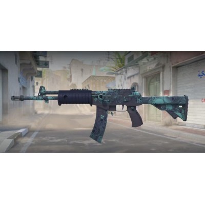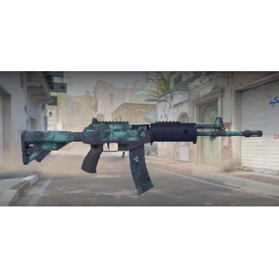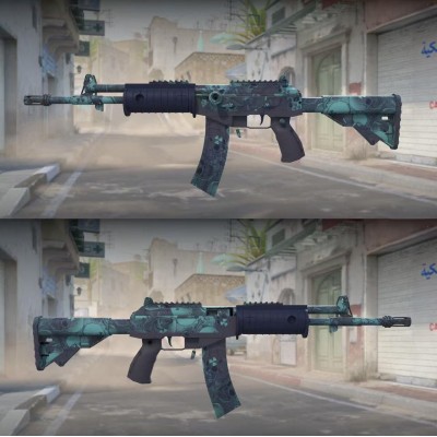 在T专用的突击步枪中,这把武器是较为便宜的选择,加利尔AR是一把中远距离作战的耐用武器。这把武器采用了含毒的蓝色水文图案。