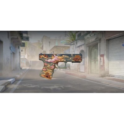 格洛克18型是一把耐用的第一回合手枪,非常适合对付那些没有穿护甲的对手,并且可以进行三连发爆炸开火。这把武器使用一只神秘的兔子在满月前跳跃的梦幻场景进行了自定义涂装。